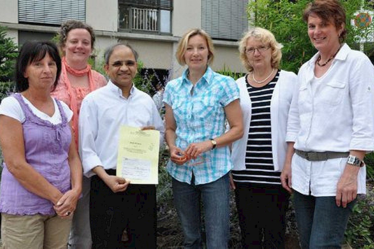 HEIDEN (hhk). Die Aktion Gänseblümchen hat einen Scheck über 300 Euro für das Haus Bethlehem in der Heimat von Präses Mathew Vazhappanady übergeben. Es ist der Erlös eines Verkaufstages im Kinder- und Jugendkleidermarkt. Das Domizil ist im Pfarrheim St. Georg. Die Übergabe fand jetzt im Rahmen des Treffens der Ehrenamtlichen in den Arkaden des Seniorenzentrums Haus St. Josef statt.
